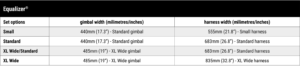 | SKU | SET OPTIONS | GIMBAL WIDTH | HARNESS WIDTH | Price |